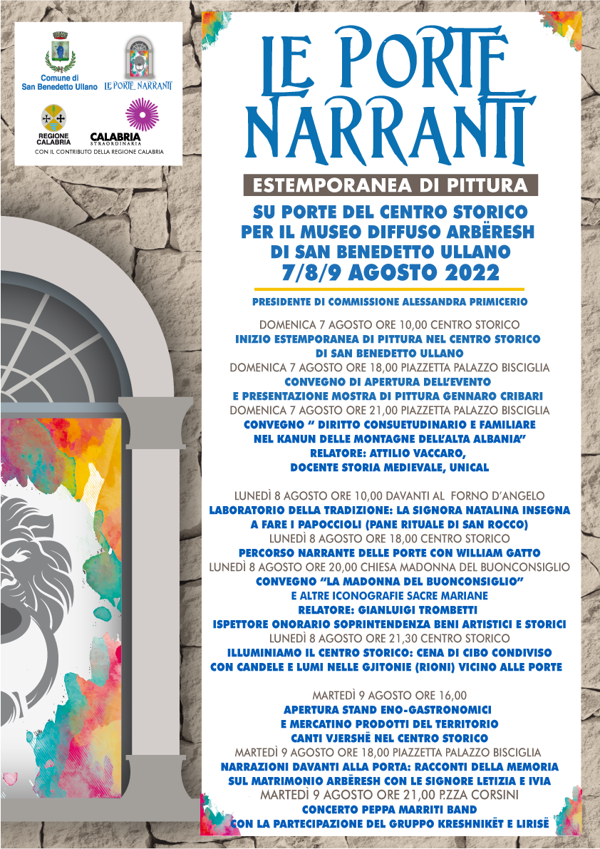 Dal 7 al 9 agosto diversi artisti dipingeranno la storia del borgo su alcune porte del centro storico interpretando, con la loro arte episodi della storia e della cultura e della preziosa spiritualità di questo paese di minoranza arbëresh.
