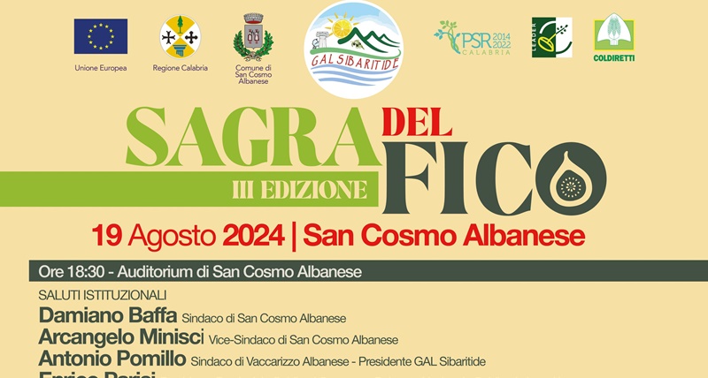 Tutto pronto per la terza edizione della Sagra del Fico, in programma il 19 agosto 2024 a San Cosmo Albanese (Cs).