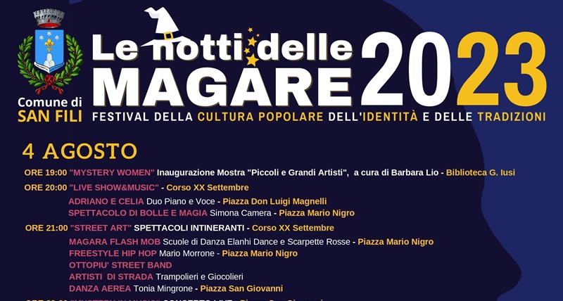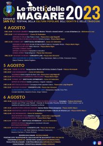 La kermesse si svolge nel centro storico del borgo e si compone di micro-manifestazioni di diversa natura: premi letterari, performance artistiche e musicali, laboratori, proiezioni, mostre, fiere, degustazioni e vendita di prodotti tipici ed artigianali, incontri con le Magare. L’evento, giunto alla XIV edizione, inserito nel più ampio Festival estivo promosso dall’Amministrazione Comunale, che prende il nome di San Fili TerraMagarae, si terrà, come da tradizione, nel primo fine settimana di agosto e, in particolare, il 4-5-6 agosto 2023.