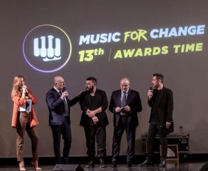 Il contest, sotto la direzione artistica di Gennaro De Rosa, che racconta i cambiamenti della nostra società attraverso la forza della Musica. A vincere la XIII edizione di “Music for Change”, che dal 2010 è il più̀ importante premio musicale europeo a sfondo civile, è stato Award Luk con il brano “Numeri”, a cui è stata consegnata l’opera realizzata dall’orafo-scultore Antonio Affidato.