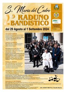 È in programma a Santa Maria del Cedro, da giovedì 29 agosto a domenica 1° settembre 2024, la seconda edizione del Raduno Bandistico organizzato dalla banda musicale “Giuseppe Verdi”. L’evento gode del patrocinio della Regione Calabria, del Comune di Santa Maria del Cedro e della sezione Calabria dell’Associazione Nazionale delle Bande Italiane Musicali Autonome (Anbima).