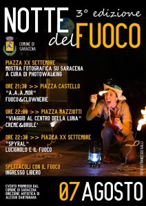 E’ uno degli eventi più atteso del cartellone estivo SaraEstate e promette di richiamare, come per gli anni passati, pubblico di ogni età nel borgo delle eccellenze. La notte del fuoco, giunta alla terza edizione, è un evento unico nel suo genere che richiama l’attenzione sull’elemento simbolico presente in tutte le culture e tradizioni del mondo che affascina da sempre le fantasie dei più piccoli e diventa elemento centrale di spettacoli proposti da artisti di strada di grande livello.