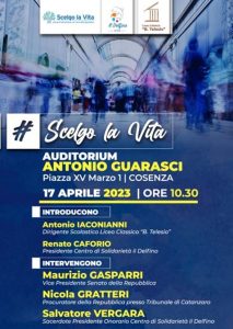 “#SCELGO LA VITA”, è questo il titolo dato all’evento del 17 aprile che vedrà la presenza nell’Auditorium del Liceo Classico Telesio di Cosenza di tre autorevoli rappresentanti delle Istituzioni e del privato sociale: Maurizio Gasparri, vice Presidente del Senato della Repubblica; Nicola Gratteri, Procuratore della Repubblica presso il Tribunale di Catanzaro e Don Salvatore Vergara, Presidente onorario del Centro di Solidarietà il Delfino. Tre figure dal grande carisma che con appassionato impegno civile da circa 30 anni si battono contro le dipendenze e la disinformazione che ne accompagna l’escalation.