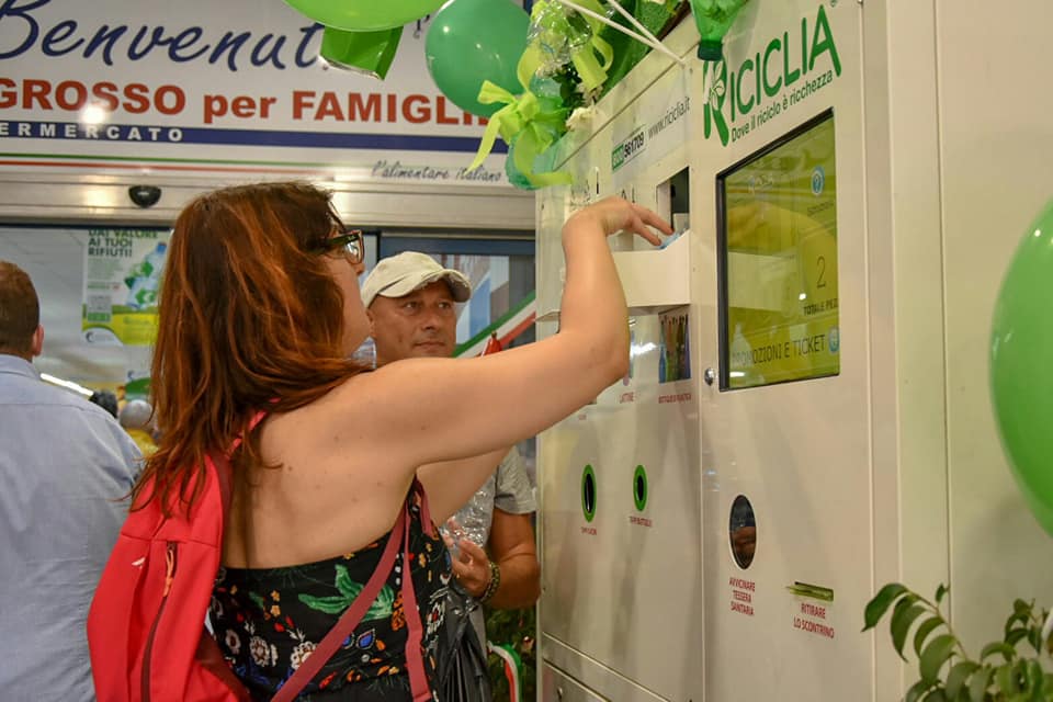 COME FUNZIONA. Ad ogni inserimento di bottiglie in plastica PET, flaconi di detersivi (HDPE)) e lattine in alluminio, l’ecocompattatore rilascia uno scontrino sul quale sono indicati i Punti Ambiente validi come buono sconto per fare la spesa. È anche possibile utilizzare la propria tessera sanitaria come “borsellino elettronico” per accumulare e memorizzare i Punti e stampare lo scontrino in un secondo momento, risparmiando così carta. Per consultare l’elenco dei negozi convenzionati e presso i quali è possibile spendere i Punti Ambiente è sufficiente scaricare sul proprio cellulare (gratuitamente) l’App Riciclia.