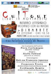Dopo il successo  del primo incontro torna “CulTour”, la rassegna Letteraria itinerante organizzata dal Cinecircolo Maurizio Grande di Diamante, arrivata alla quarta edizione. Sabato 12 alle ore 18,30, al Museo DAC (Ponte delle Arti e delle Culture) di Diamante,  secondo appuntamento con la presentazione del libro “Una favolosa estate di morte” di Piera Carlomagno (Rizzoli Editore).Ricordiamo che la rassegna che vede il patrocino dell’Assessorato alla Cultura del Comune di Diamante. L’appuntamento di sabato sarà moderato da Stella Fabiani, docente di lettere. L’Assessore alla Cultura del Comune di Diamante, Francesca Amoroso, porterà i saluti dell’Amministrazione Comunale. Per il Cinecircolo Maurizio Grande interverranno il Direttore Artistico, Francesco Presta, e il Direttore Tecnico, Ferdinando Romito. Concluderà l’autrice, Piera Carlomagno.