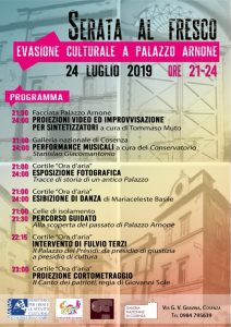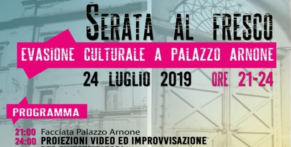 Mercoledì 24 luglio 2019, a Cosenza, Palazzo Arnone, dalle ore 21.00 alle ore 24.00, si terrà Serata al fresco – Evasione culturale a Palazzo Arnone, iniziativa di grande fascinazione che approfondirà la storia e le vicende umane e politiche del Cinquecentesco Palazzo dei Prèsidi, comunemente conosciuto come Palazzo Arnone.