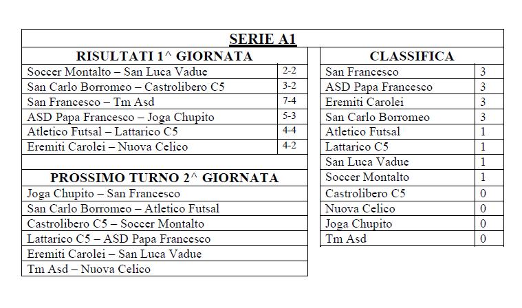 | PROSSIMO TURNO 2^ GIORNATA | Soccer Montalto | 1 | ||