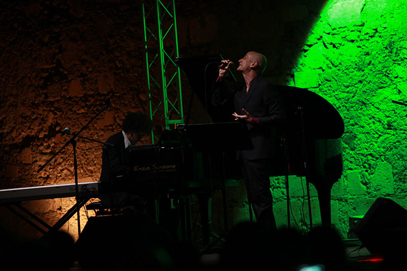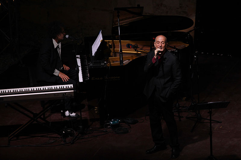 Un concerto di una “caratura preziosissima”, dove la personalità eclettica e teatrale di Peppe Servillo, si è mescolata alla bravura incontenibile di due musicisti di fama mondiale. Due musicisti argentini, Javier Girotto – saxofonista, clarinettista, flautista – e Natalio Mangalavite, pianista, entrambi jazzisti poliedrici e raffinati che da dieci anni ormai, hanno stretto con Servillo un sodalizio che si è dimostrato un ponte, sul quale l’ascoltatore incontra pathos e contaminazione, punto cardine di questa formazione.