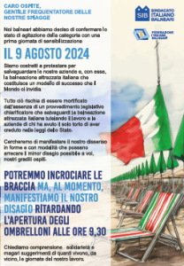 La mobilitazione prevede la chiusura degli ombrelloni per due ore il 9 agosto. Se non ci sarà una presa di posizione dell’esecutivo, le proteste continueranno il 19 agosto, con una chiusura di quattro ore, e il 29 agosto, con una chiusura di sei o otto ore.
