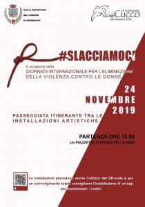 #Slacciamoci è lo slogan che guida la giornata del 24 Novembre a Mormanno. In occasione della Giornata internazionale per l’eliminazione della violenza contro le donne l’Amministrazione comunale, guidata dal Sindaco Giuseppe Regina, e la Compagnia del Cucco hanno organizzato una passeggiata nel borgo tra emozione e riflessione.