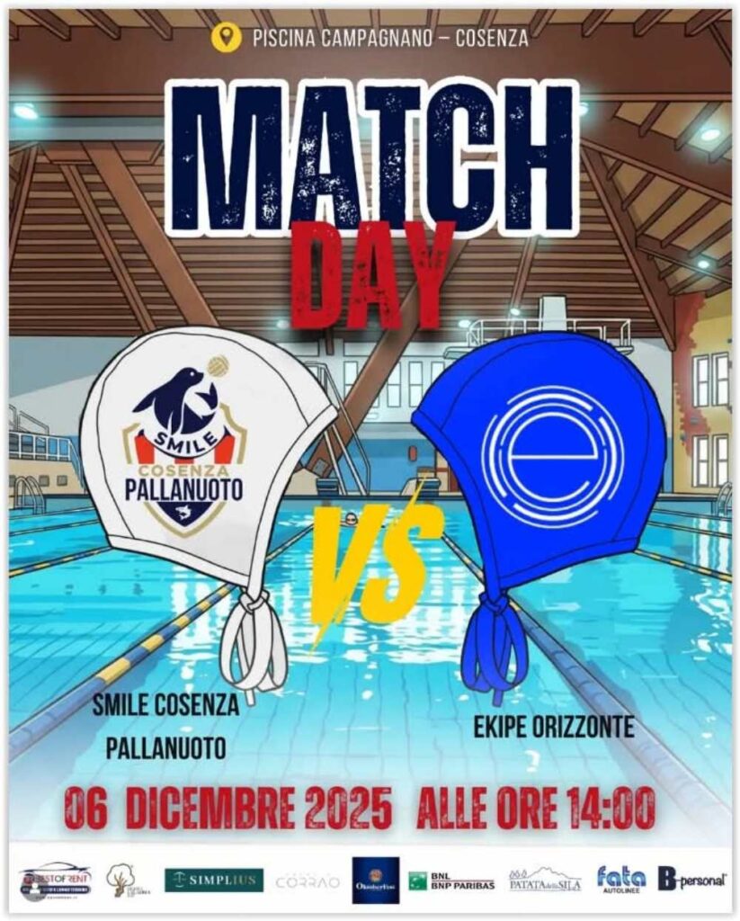 La piscina di Campagnano si prepara a vivere una delle giornate più attese della stagione. Sabato 6 dicembre, alle ore 14:00, la Smile Cosenza Pallanuoto scenderà in acqua per affrontare la temibile Ekipe Orizzonte Catania, una delle formazioni più blasonate e competitive del panorama nazionale.