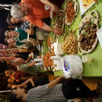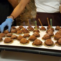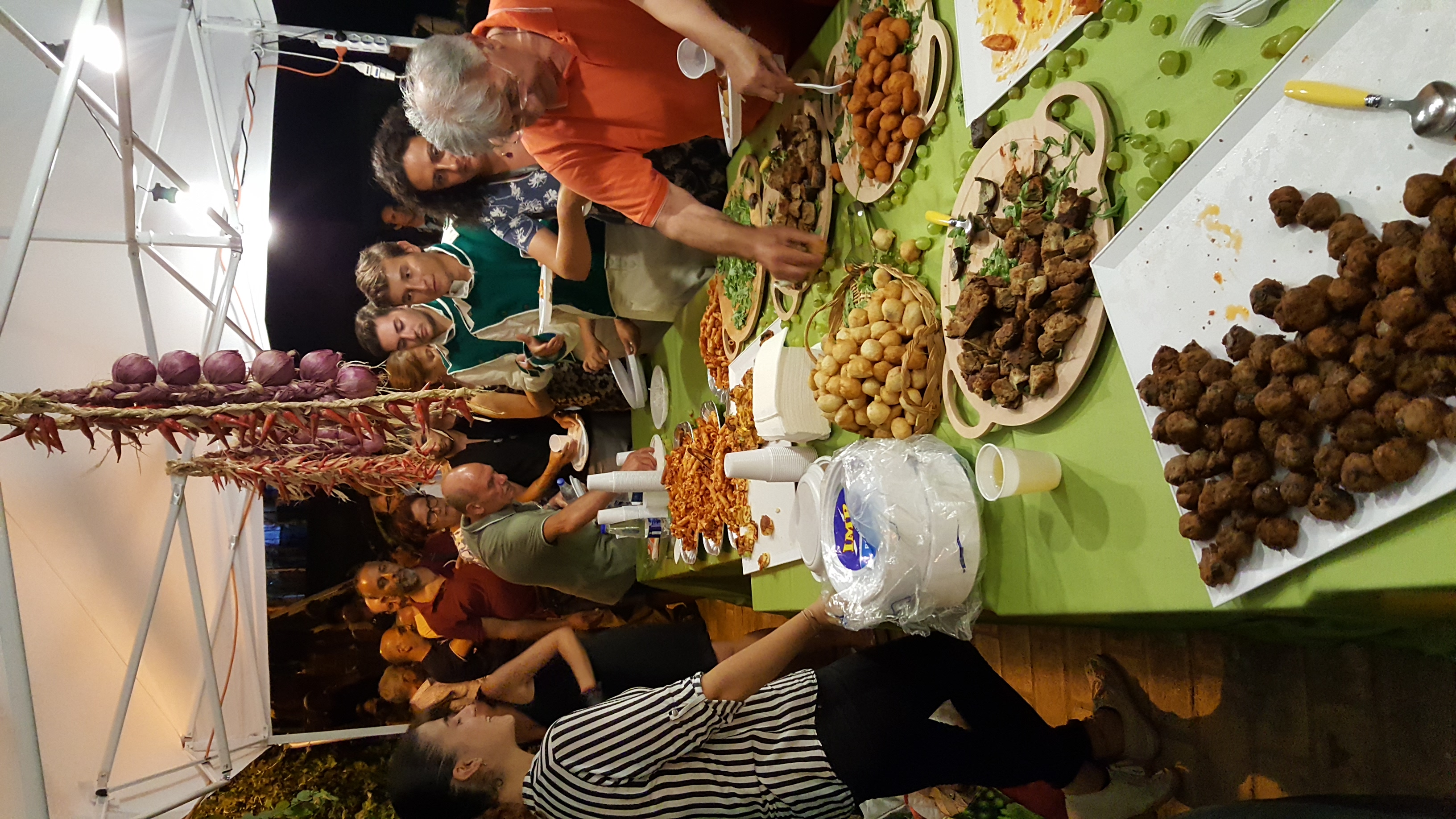L’allestimento, nei giorni trascorsi di fine Agosto, della Fiera alimentare espositiva dei prodotti tipici del territorio calabrese e specificatamente di Pizzo era basata sull’allestimento di quattro gazebo di ampia superficie più un quinto destinato ad accogliere la Mostra Fotografica delle Rievocazioni storiche di Pizzo, nonché delle foto vincitrici del Concorso Fotografico “Paolo Scisciani”. I Gazebo erano dedicati rispettivamente alla gastronomia popolare tipica di Pizzo curato dalla Ditta LA CUOCARINA, al vino zibibbo della Casa Vinicola Pizzitana SCHUTICCHIO, ai famosi tartufi di Pizzo della Ditta Domenico PENNA ed infine alla pasticceria napitina curata dalla Ditta Giorgio RAFFAELE. In particolare nello Stand della Ditta LA CUOCARINA venivano offerti gratuitamente assaggi di: pasta ripiena, frittata con patate e cipolla, frittata con peperoni, polpette di melanzane alla pizzitana, polpette di patate e ‘nduja, pipi e patate, monacej, degustazioni di tonno Sardanelli ed infine melanzane ripiene.