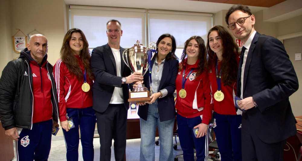 L’assessore Micheli premia le atlete reduci dal trionfo di Atene: “Un orgoglio per tutto il territorio”. La società rilancia: “Ora sogniamo di ospitare un evento internazionale a Cosenza”.
