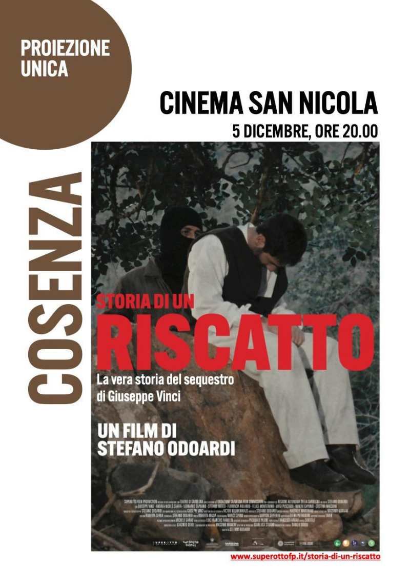 Tra qualche giorno avrà luogo la proiezione speciale del film “Storia di un riscatto” di Stefano Odoardi, che tratta il tema della libertà e del riscatto personale e sociale attraverso la narrazione della storia vera di Giuseppe Vinci, l’imprenditore sardo rapito dall’anonima sequestri nel 1994.