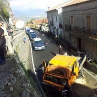 Pare che a causare l’incidente sia stato un camion che, senza conducente, ha iniziato a muoversi giungendo sino al ciglio che delimita il costone del muro di sostegno della strada comunale, ove in quel momento, vi era parcheggiata un auto.