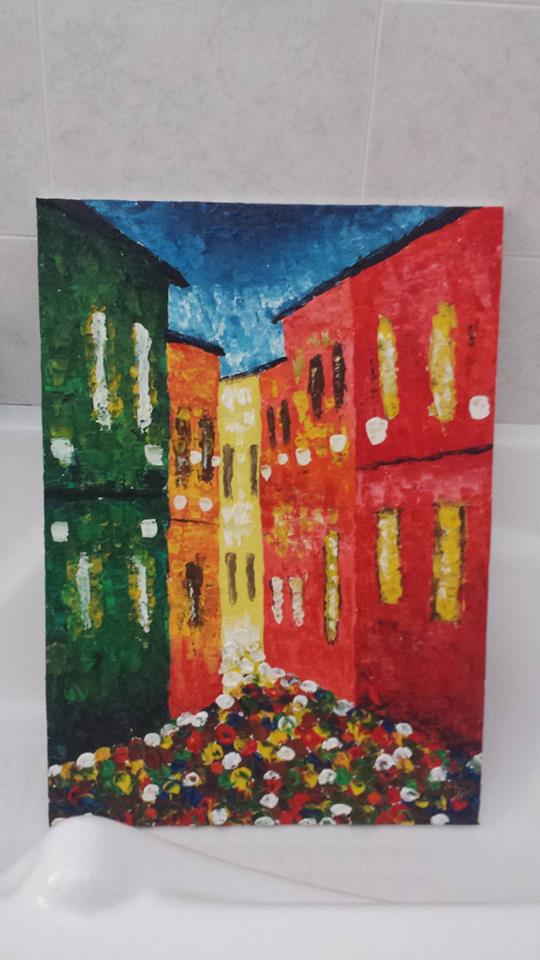 In questo momento sto usando colori vivaci, forti, caldi che spiegano il mio stato d’animo di adesso. Poi ognuno li interpreta come vuole