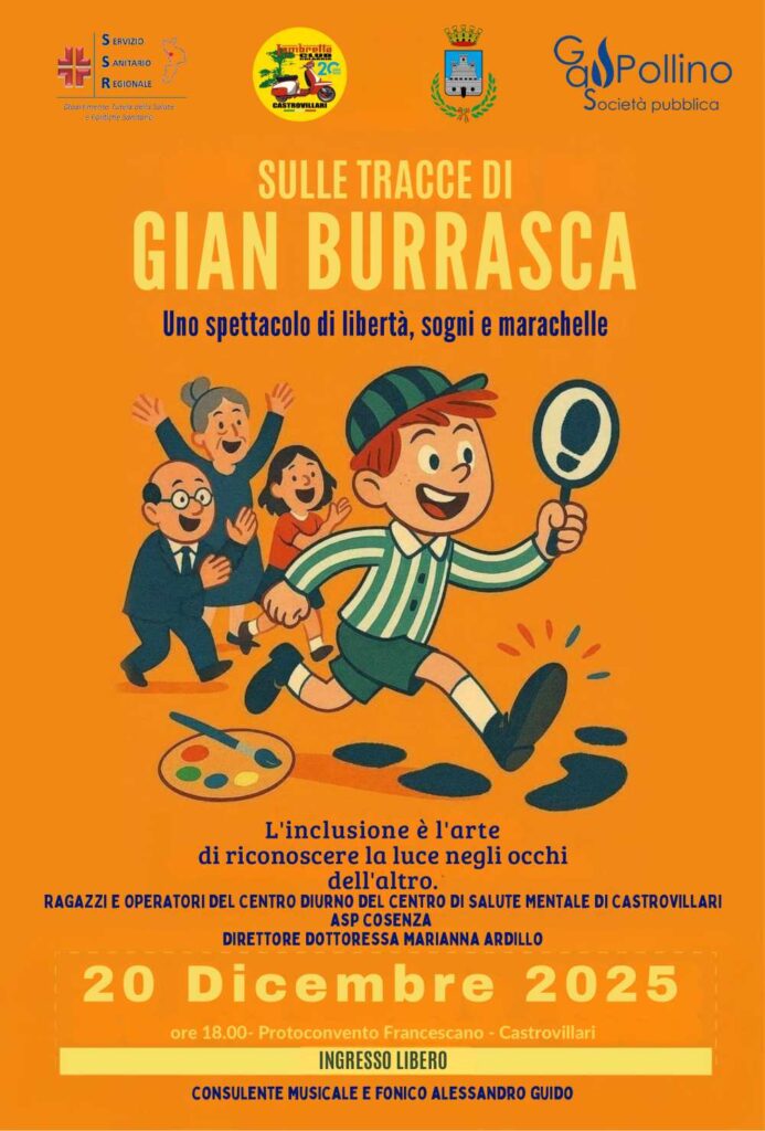 Il teatro come strumento di inclusione, espressione e riabilitazione. È questo il cuore di “Sulle tracce di Gian Burrasca”, lo spettacolo che andrà in scena il 20 dicembre 2025, alle ore 18.00, al Protoconvento Francescano di Castrovillari, con ingresso libero.