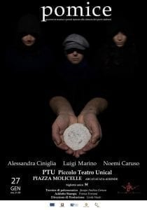 “Pomice”, racconto in musica e parole, prende ispirazione dall’opera dei poeti calabresi – fra i quali Franco Costabile, Fortunato Seminara e Lorenzo Calogero – per raccontare di una Calabria che cade a pezzi fra le scosse dei terremoti e sotto il peso dell’indifferenza, ma che sa anche resistere e ripartire da capo.