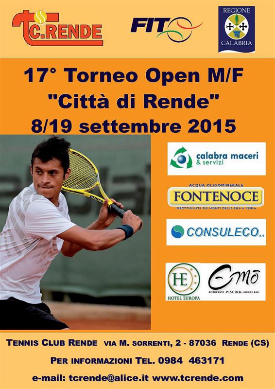 Dall’8 al 19 Settembre il via alla diciassettesima edizione del Torneo “Cittá di Rende”. Diversi i protagonisti presenti per il montepremi finale di 2000 euro.