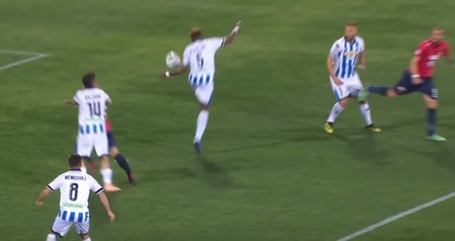 In casa contro il Brescia direzione a senso unico del signor Dionisi dell’Aquila che prima assegna un goal di mezzo metro in fuorigioco alla squadra di Corini e poi completa l’opera assegnando un rigore dubbio che consente alle rondinelle prima di pareggiare e poi di vincere nel finale. A Pescara ieri sera è andata in scena l’ennesima farsa diretta dal signor Illuzzi di Molfetta e per giunta sotto le telecamere di Rai Sport visibile quindi in tutta Italia.