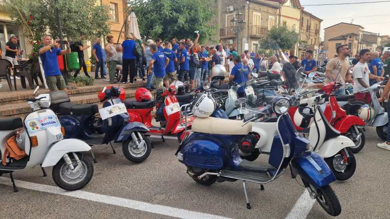 Tra i momenti più significativi della giornata, la sosta nel centro di San Lorenzo del Vallo ha rappresentato un’autentica celebrazione di ospitalità e comunità. Il convoglio di Vespe, moto e scooter ha invaso pacificamente la centrale Piazza Giovanni Paolo II, trasformandola in un colorato punto d’incontro tra cittadini e motociclisti.