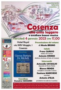 Mercoledì 4 gennaio 2023 alle ore 17 al Royal – il salotto culturale di Cosenza – il terzo appuntamento con la storia di un personaggio tutto da scoprire: Giovan Battista De Micheli