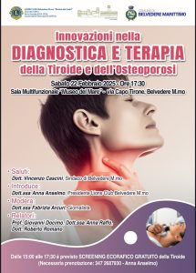 L’evento offrirà inoltre un’opportunità concreta di prevenzione: dalle ore 15:00 alle 17:30 sarà possibile sottoporsi gratuitamente a uno screening ecografico della tiroide, previa prenotazione.