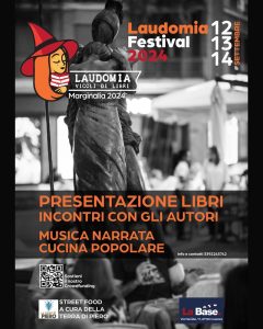 Il tema dell’edizione 2024 è Marginalia – Il festival delle note (non più) a margine. «Provare a entrare all’interno di un’opera letteraria – scrive il collettivo Laudomia – è come provare a penetrare nei meandri della complessità sociale, non sappiamo mai da quale pertugio infilarci. Il più delle volte, l’ingresso principale è sbarrato, mentre quello secondario non riusciamo neanche a trovarlo. Allora, stanchi e spazientiti, spesso scegliamo la via più comoda, la lettura più semplice, l’interpretazione più in voga».