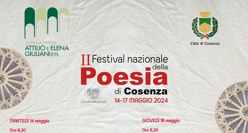 Un traguardo – ha aggiunto Walter Pellegrini – che fa il paio con la risposta entusiasta delle scuole a questa iniziativa (dal Liceo Classico “Bernardino Telesio” ai Licei scientifici “Scorza” e “Fermi” al Polo scientifico “Brutium” di Cosenza) nella quale saranno coinvolti centinaia di studenti che avranno la possibilità di conoscere e misurarsi con alcuni dei maggiori poeti italiani contemporanei. Un sentito ringraziamento, infine, va a quanti, a diverso titolo, hanno contribuito alla organizzazione del Festival, riconoscendone la qualità, l’importanza e l’altissimo valore culturale”.