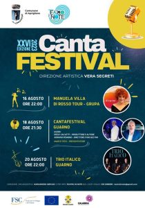 Il CantaFestival entra nel vivo nella giornata di venerdì 18 quando, a partire dalle 21.30 a Guarno, ci sarà l’esibizione dei giovani talenti. Giurati d’eccezione saranno il produttore e autore Diego Calvetti e il direttore d’orchestra Adriano Pennino. Nella serata, presentata da Marco Tiesi, saranno ospiti la giovane cantante Celine Tradigo, una ragazza di 24 anni che è allieva della prestigiosa accademia Caccini, e Daniele Moraca, cantautore calabrese di una spiccata sensibilità artistica, che proprio in questi giorni esce con il suo nuovo disco “Live in teatro 1992 – Daniele Moraca”.