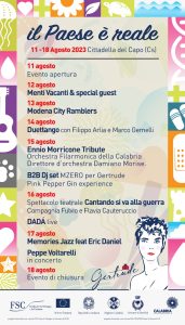 Torna nella splendida cornice di Cittadella del Capo (Cosenza), dopo cinque anni dall’ultima edizione, il festival de Il Paese di Gertrude: appuntamento unico nel suo genere in cui si mescolano arte, cultura, informazione, volontariato.