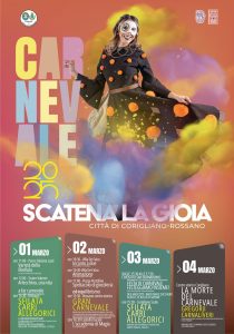 Al via, quindi, il 1° marzo presso il Parco Fabiana Luzzi, il Teatro Vincenzo valente e la sfilata dei carri allegorici a Rossano Scalo. Nei giorni a seguire ancora animazioni, spettacoli, sfilate dei carri, concorso della maschera più bella rivolto alle scuole primarie, per chiudere poi il 4 marzo nel centro storico di Corigliano con “Gregorji Carnaliveri”.