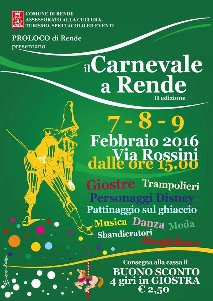 La seconda edizione del “Carnevale di Rende”, aprirà con una vivacissima sfilata, animata da majorette, sbandieratori e dalle maschere della tradizione carnevalesca.
