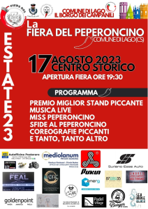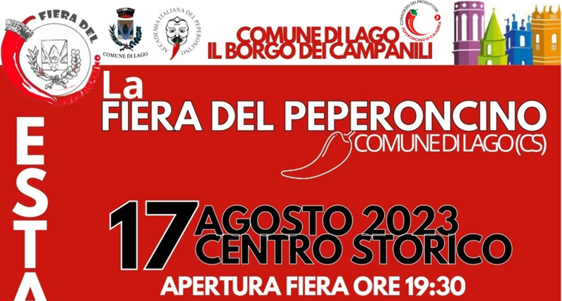 La Fiera del Peperoncino di Lago è diventata nel corso degli anni l’evento di punta delle manifestazioni estive del piccolo borgo in provincia di Cosenza, tanto da essere diventata la festa più frequentata anche da parte di visitatori provenienti dai Comuni limitrofi.