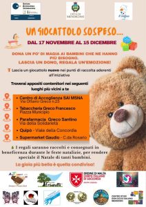 Mendicino si fa comunità che dona, accoglie e condivide grazie all’iniziativa “Un giocattolo sospeso”, una campagna solidale che dal 17 novembre al 15 dicembre coinvolgerà cittadini, associazioni e istituzioni in un grande gesto di generosità collettiva.
