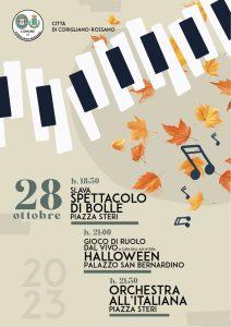Creare un cartellone continuo, dal basso, di manifestazioni dall’estate all’inverno. Questo il filo rosso seguito dall’Amministrazione Comunale nel promuovere e sostenere il Bando eventi – e quindi tutte quelle iniziative partite da associazioni e realtà presenti sul territorio – che si legano in perfetta armonia insieme a quelle ideate dall’ente comune. In questa scia si inserisce il cartellone organizzato per l’autunno, in attesa del Natale.