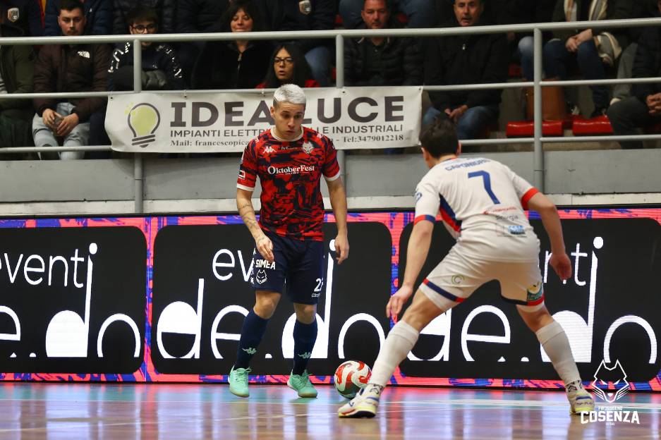 Finisce 2-2 al PalaCosentia con i lupi, passati per primi in svantaggio per la rete di Marinovic, che riprendono i campani grazie a Titon e li sorpassano momentaneamente con uno splendido gol di Carlitos prima di subire il punto del pari firmato da Lucas Braga.
