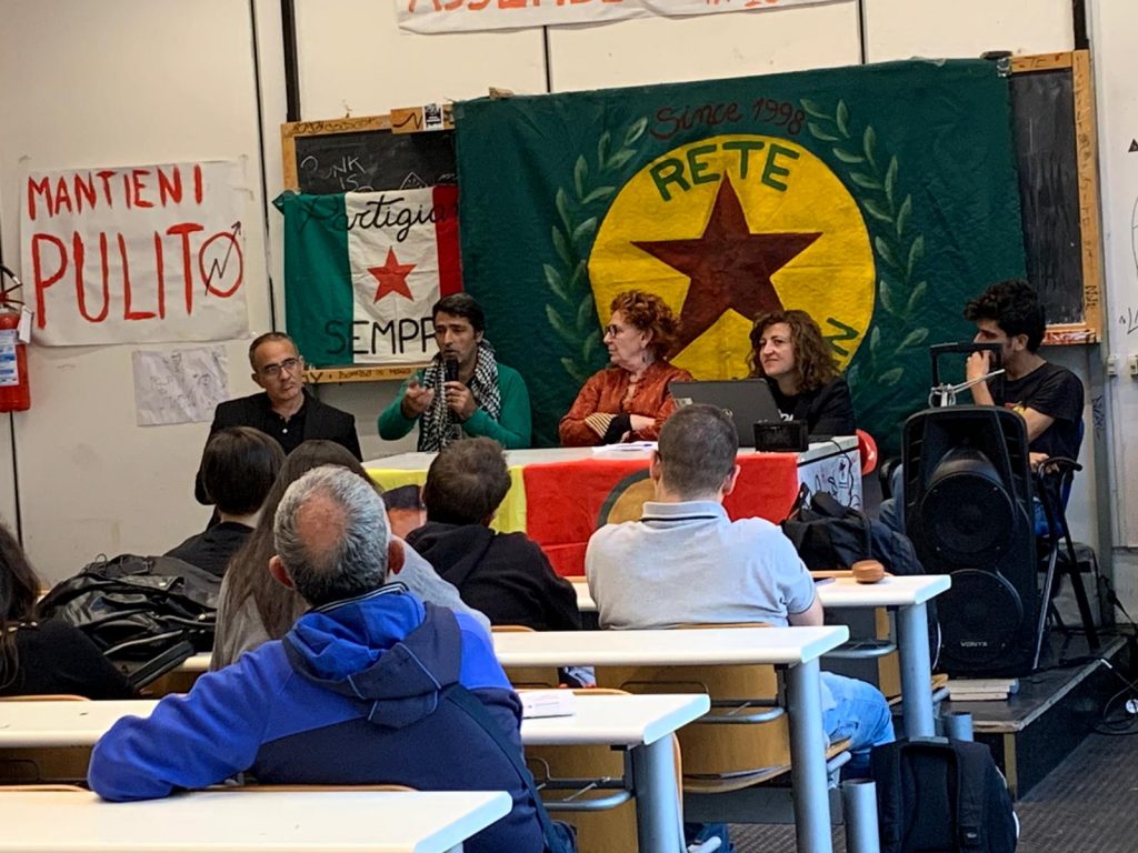 L’evento, partito dalle azioni congiunte da parte del comune -che ha aderito alla mobilitazione lanciata dalla rete Città in comune- e da studenti, ricercatori e professori che hanno fatto proprio l’appello partito dalle Università del Rojava e di Kobane, ha visto la partecipazione del docente Fortunato Maria Cacciatore e della rete Kurdistan Cosenza con Talip Heval e Federico Giordanelli.