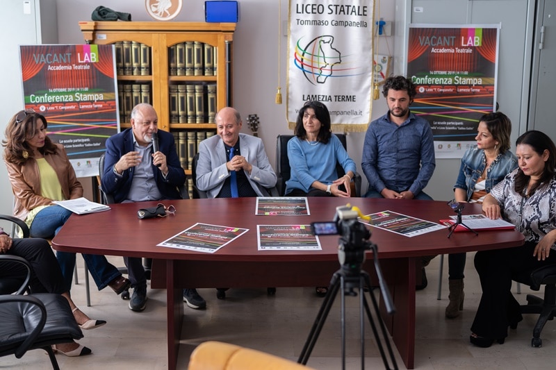 La presentazione del progetto si è tenuta al Liceo Campanella in una conferenza stampa moderata da Giovanna Villella, alla presenza di: Nico Morelli, presidente dell’associazione teatrale Vacantusi; Pierpaolo Bonaccurso, direttore artistico di teatrop; Angela Gaetano, responsabile dei laboratori “Vacantiandu”; Giovanni Martello, dirigente scolastico del Liceo Campanella; Teresa Goffredo, dirigente scolastico Liceo Scientifico Galilei; le docenti Patrizia Gatti, referente progetto Liceo Galilei, e Licia Di Salvo, referente progetto Liceo Campanella.