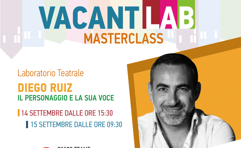 E sarà proprio il direttore artistico Diego Ruiz a condurre un interessante laboratorio teatrale dal titolo Il personaggio e la sua voce. Il laboratorio è rivolto ad attori professionali o appassionati di teatro che vogliano trascorrere due giorni divertendosi, sperimentando, giocando e parlando di teatro.