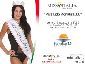 Anche le ragazze iscritte non vedono l’ora di salire sul palco tanto ambito, c’è tanta emozione e felicità; speriamo di portare a casa un buon risultato, una Miss Italia calabrese“. Un ringraziamento ai gestori del Monalisa 3.0 Beach Club di Cirella Paola e Stefania Caroprese, Massimo Viola, Giuseppe Arnieri e Francesco Barone.