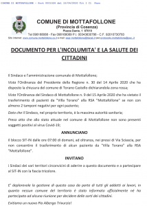 DOCUMENTO PER L’INCOLUMITA’ E LA SALUTE DEI CITTADINI