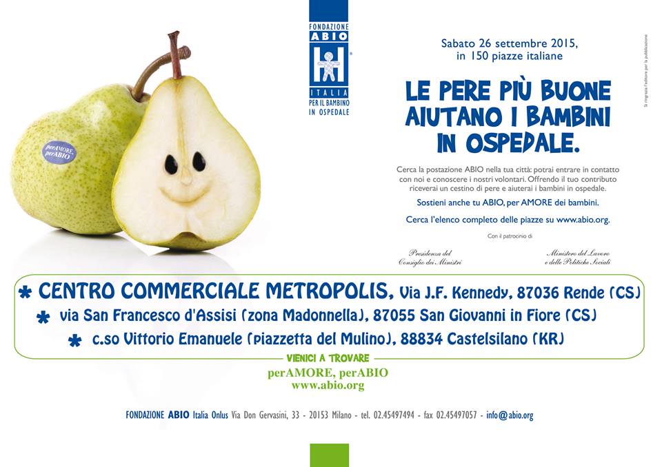 Sarà possibile sostenere le attività di ABIO con l’acquisto di un cestino di pere, simbolo della Giornata Nazionale ABIO, sar soprattutto grazie al contributo di tutti che Associazioni potranno realizzare corsi di formazione per portare nuovi volontari nei reparti di pediatria delle città italiane.